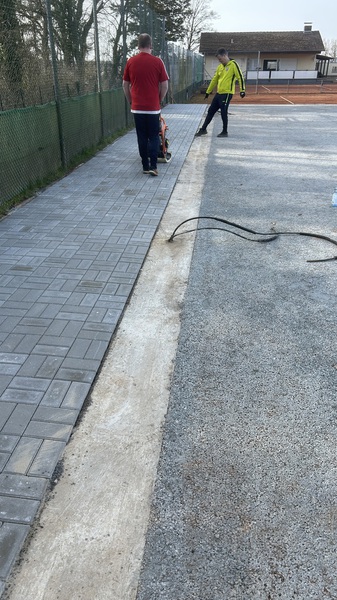 Gestern war Groß-Einsatz. Die komplette linke Fläche neben dem Court konnte gepflastert werden. Vielen Dank an alle fleißigen Helfer.