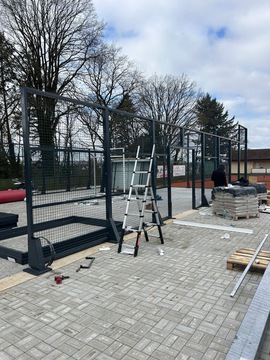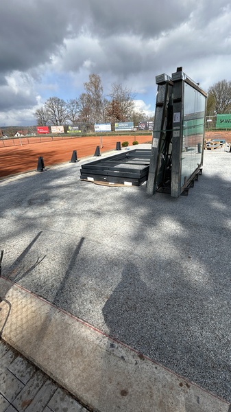 Wie geht es weiter? In der kommenden Woche wird als erstes der Weg fertig gepflastert. Danach werden die Elektroarbeiten zum Abschluss gebracht. Im Laufe der Woche rückt dann noch die Firma für die Frühjahrsinstandsetzung der Plätze an. Und Anfang der übernächsten Woche wird die Padel-Anlage geliefert und aufgebaut. Wenn uns das Wetter keinen Strich durch die Rechnung macht, werden zum Monatsende hin sowohl die Tennisplätze, als auch der neue Padel-Court zum Spielen freigegeben werden können.