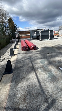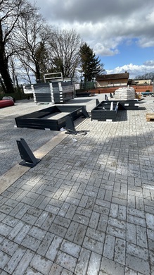 Jetzt geht's los. Gestern wurde das Material abgeladen. Seit heute Vormittag wird montiert.
